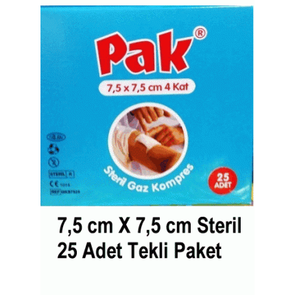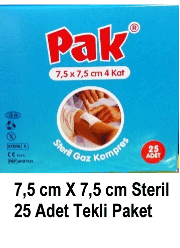 1 Kutu İçinde Her Biri 7,5 cm X 7,5 cm Ebadlarında Kesilmiş 25 Adet Steril Gaz Kompres Bulunur.